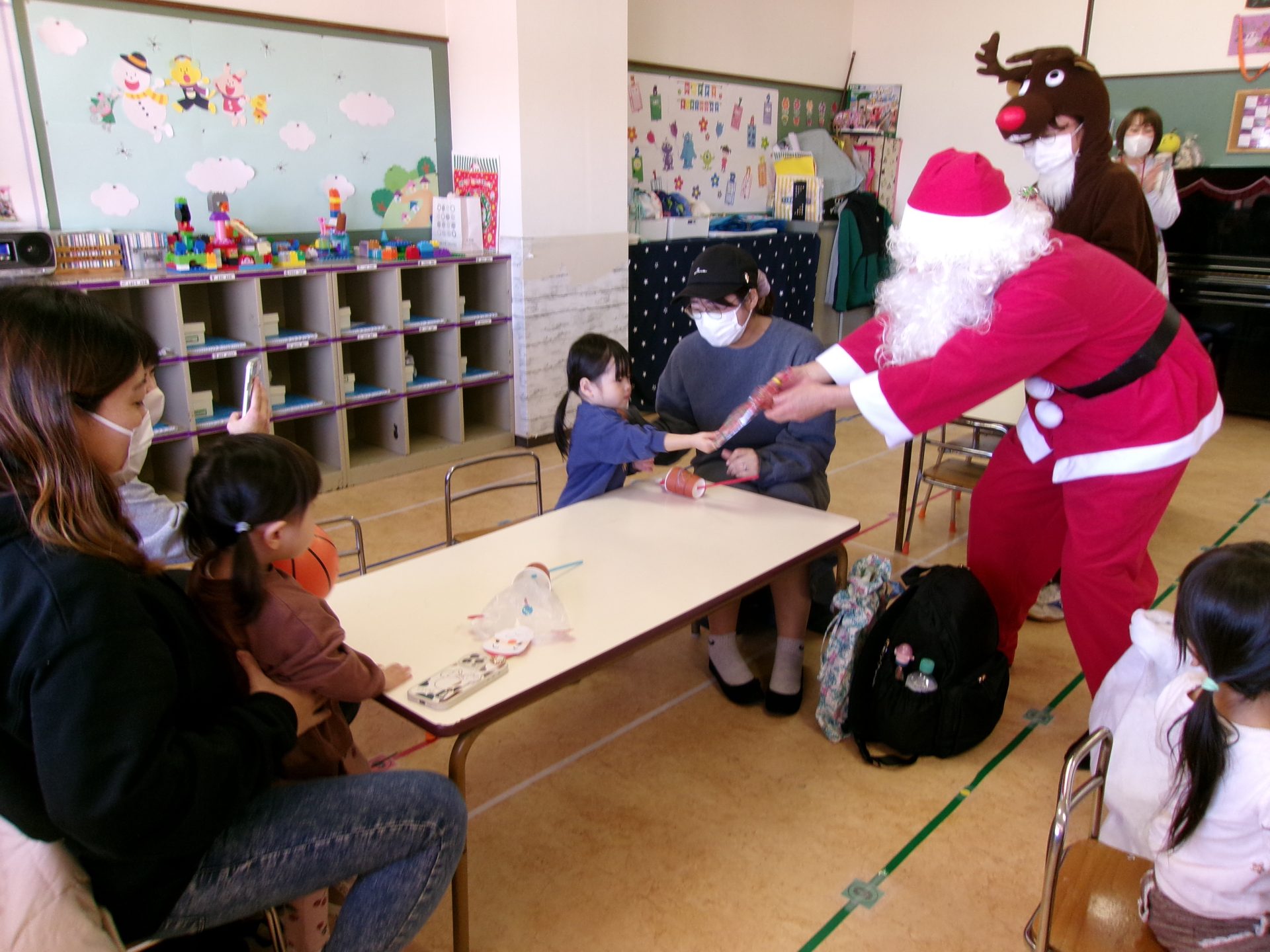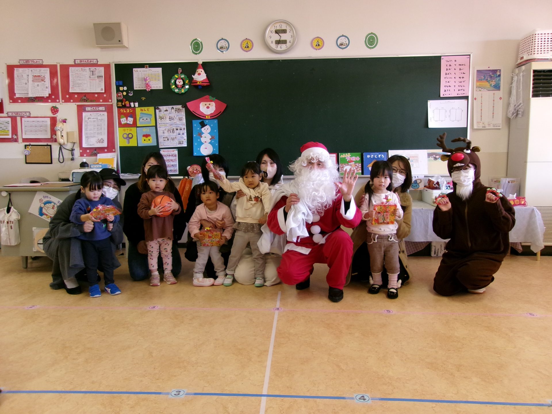 最後には、サプライズでサンタクロースとトナカイが登場し、プレゼントを渡してくれました。